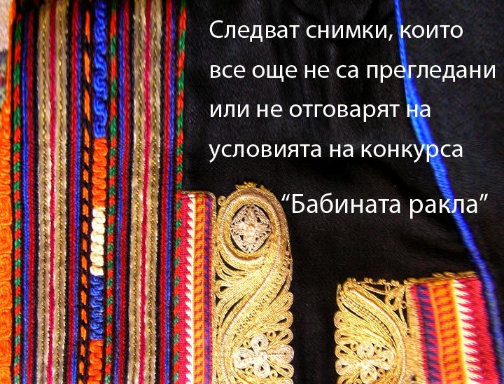 "Babinata Rakla" is a contest for photos of traditional Bulgarian costume organized by Balkanfolk LTD. Conditions for the contest.