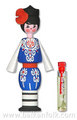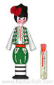 BF 053301 Muskal - doll boy 1 A small Bulgarian wooden traditional doll in a typical Bulgarian folk costume. It contains inside an ampoule of the famous Bulgarian rose oil essence, which is the main product in perfumery.